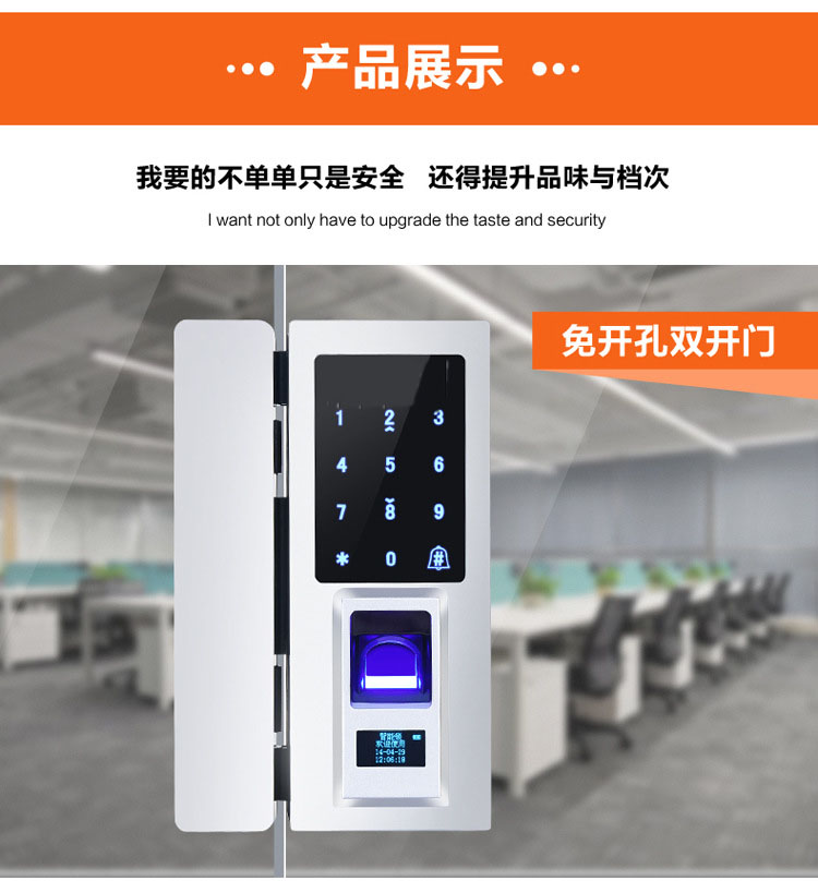 玻璃門(mén)指紋鎖密碼刷卡鎖免開(kāi)孔、門(mén)禁系統(tǒng)帶遙控支持微信遠(yuǎn)程開(kāi)門(mén)
